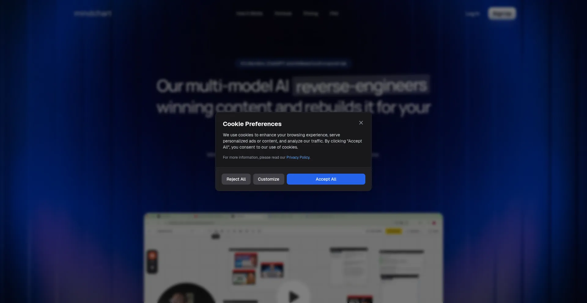 The website implements cookie consent mechanisms in compliance with privacy regulations such as GDPR or CCPA. This demonstrates that mindchart.ai adheres to data protection standards and provides users with control over personal data collection practices.