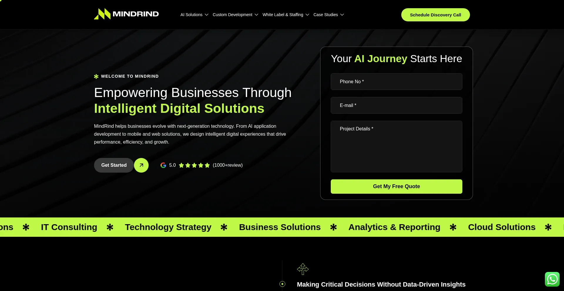 Empowering businesses with AI, mobile apps, and web solutions. Build smarter, scale faster, and transform your vision into reality. Get a free quote today.