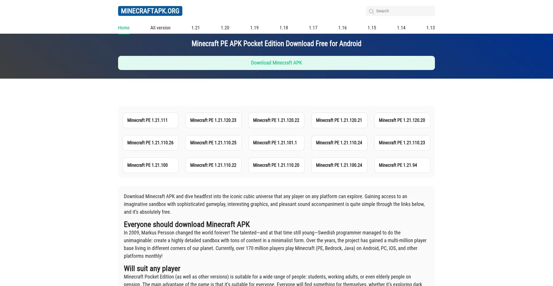 MINECRAFTAPK.ORG - Download the latest versions of Minecraft for Android
