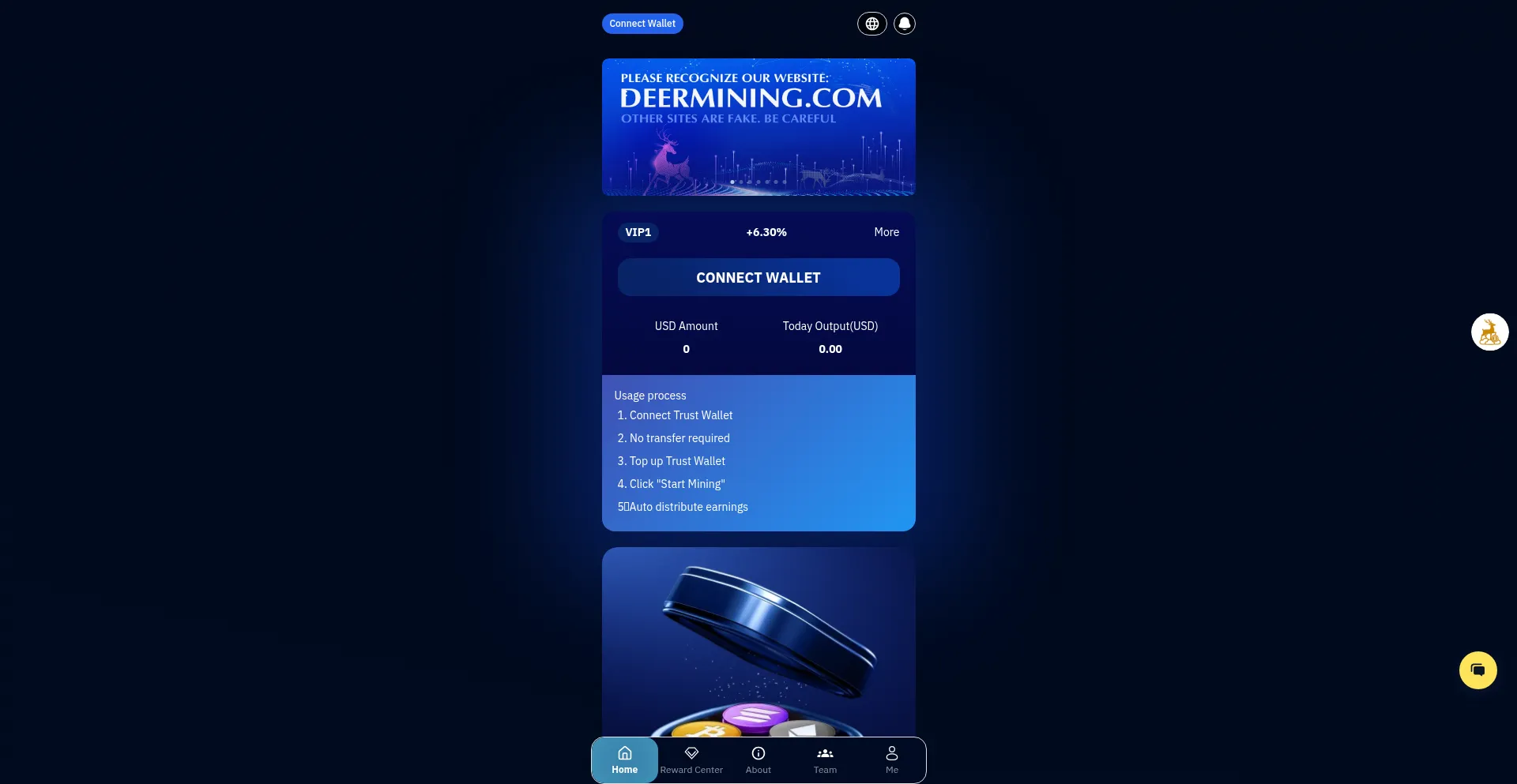 The mining-deer.club probably offers cloud mining services or cryptocurrency mining investments. Some platforms provide legitimate mining rental services, while others may use fake mining dashboards to display virtual earnings that cannot be withdrawn.