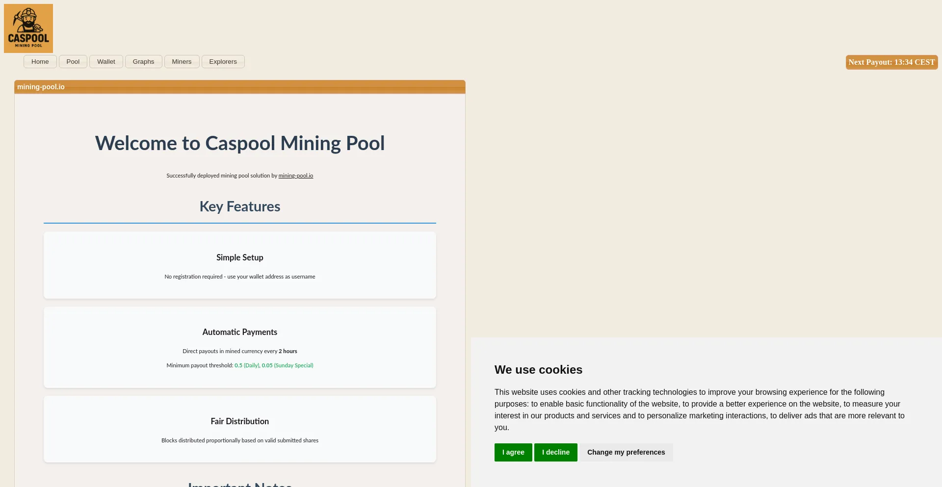 The website implements cookie consent mechanisms in compliance with privacy regulations such as GDPR or CCPA. This demonstrates that mining-pool.io adheres to data protection standards and provides users with control over personal data collection practices.