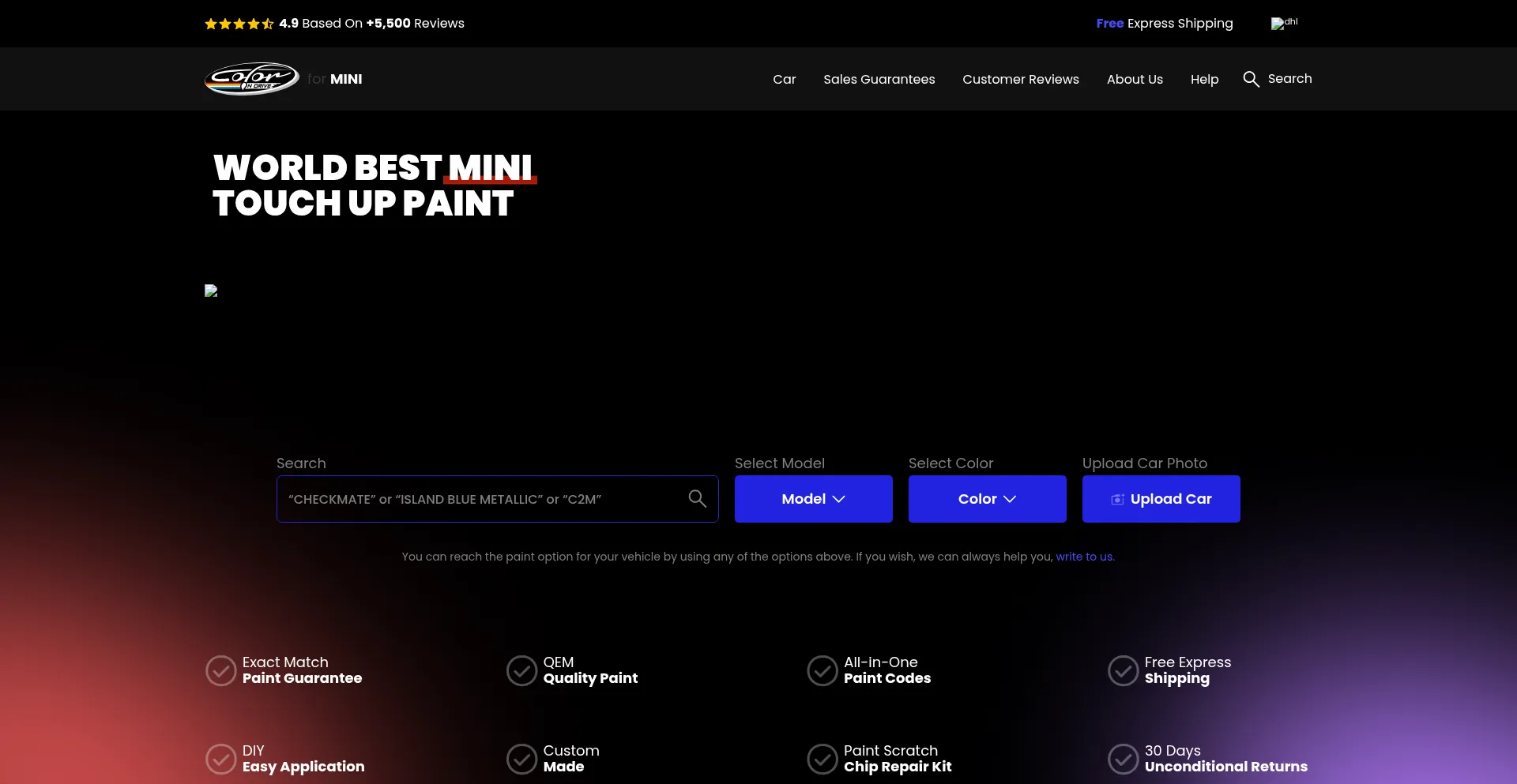 Match your MINI's color perfectly with Color N Drive touch up paint. Our easy to use solution guarantees a flawless finish. Keep your MINI looking like new with Color N Drive.