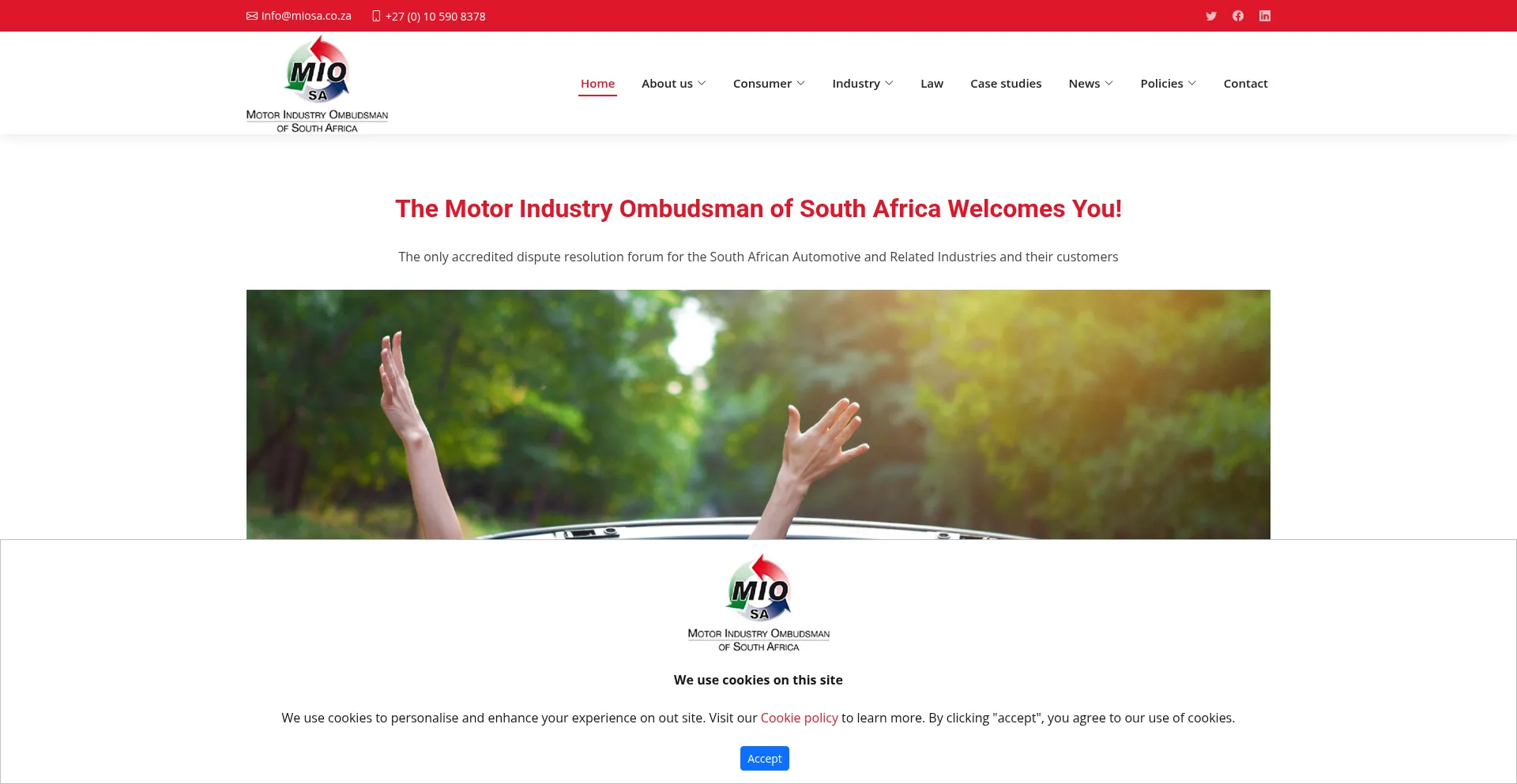 The website implements cookie consent mechanisms in compliance with privacy regulations such as GDPR or CCPA. This demonstrates that miosa.co.za adheres to data protection standards and provides users with control over personal data collection practices.