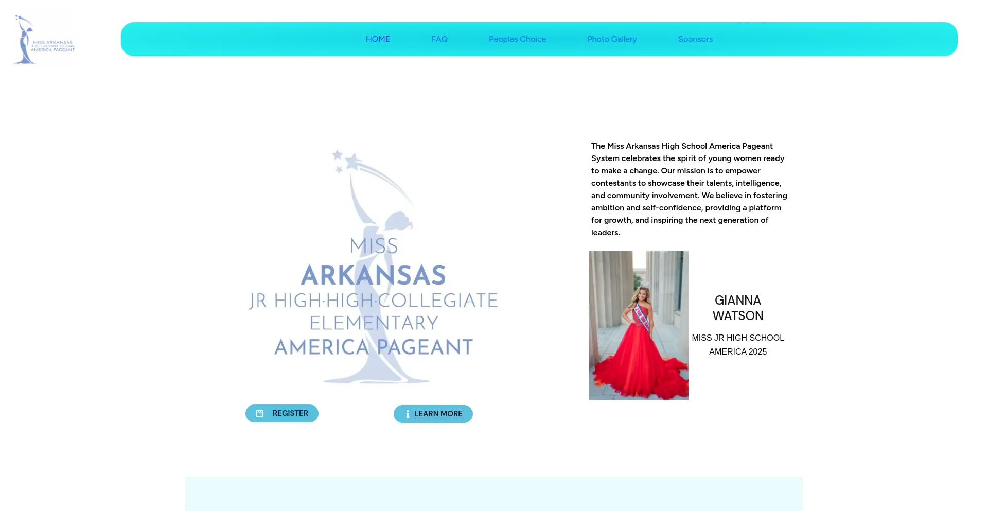 Learn More Register GIANNA WATSON MISS JR HIGH SCHOOL AMERICA 2025 The Miss Arkansas High School America Pageant System celebrates the spirit of young women