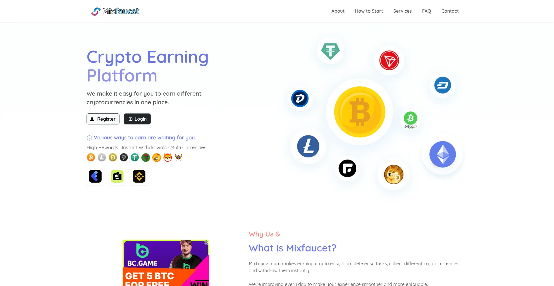 Mixfaucet.com - Earn Free Crypto , PTC Ads , Offerwalls , Contests , Faucets , Shortlinks and more In One Place!