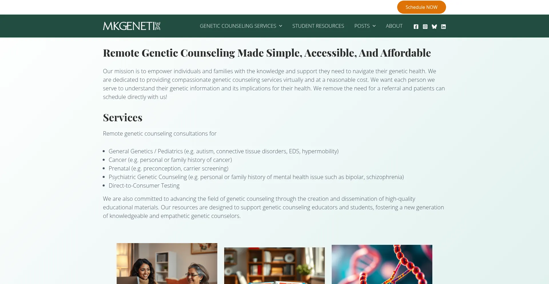 MKGenetix: Professional remote genetic counseling services providing personalized care, testing guidance, and education. Accessible and compassionate support.