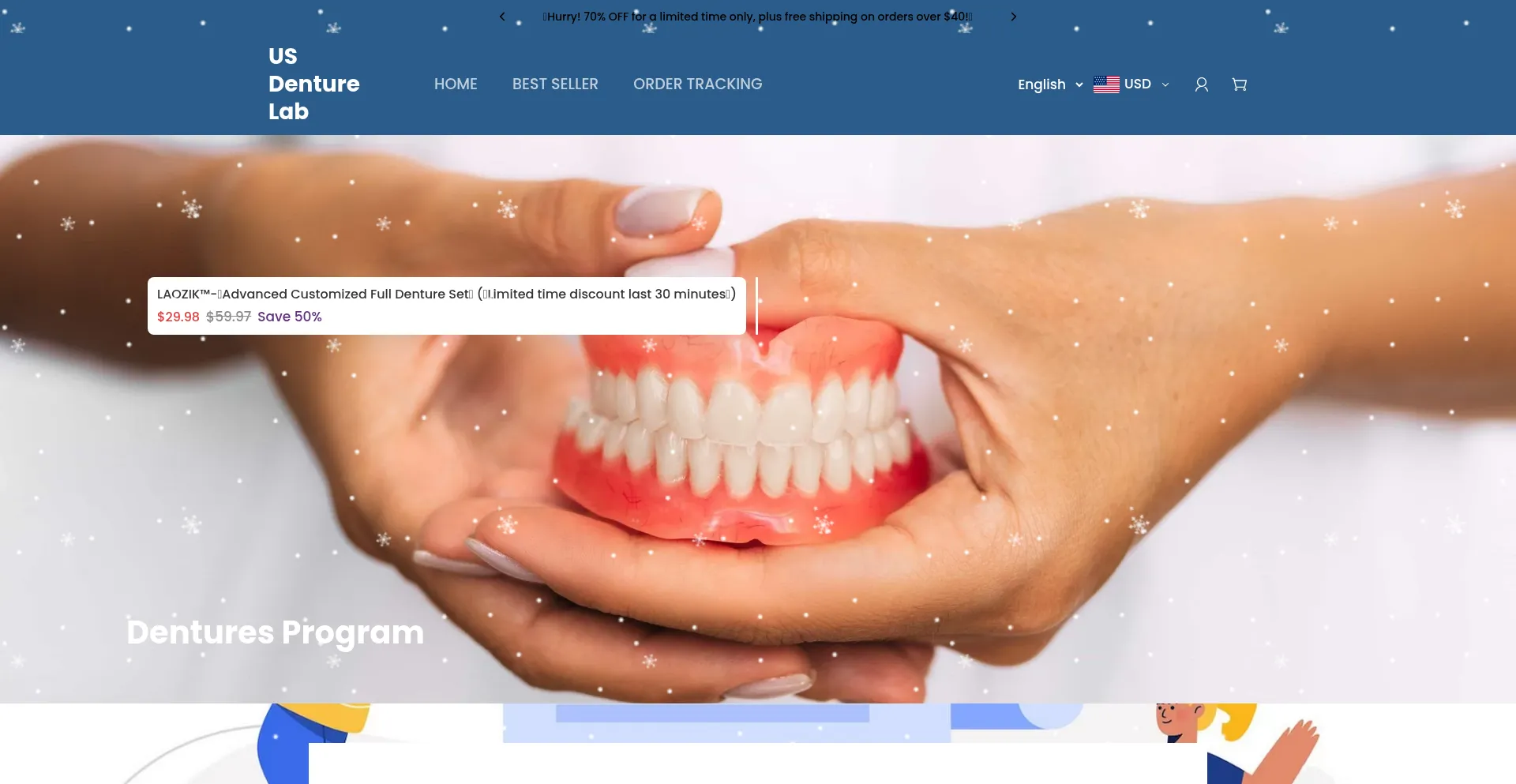 The platform is promoted through various channels including social media advertising on Facebook, Instagram, and TikTok. Marketing materials feature discount offers and product images to attract customers.