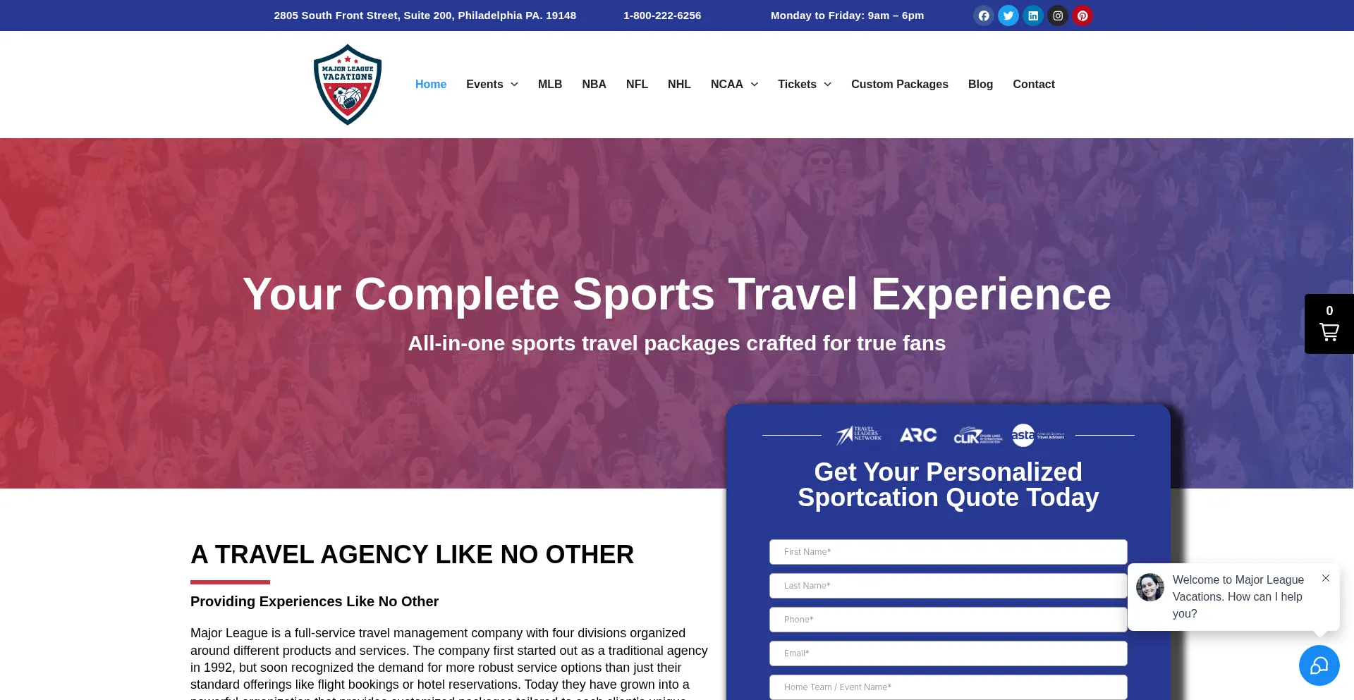 Build your perfect sports trip—ticket options, hand‑picked hotels and custom upgrades for MLB, NFL, NBA, NHL and more. Plan with experts. Get in touch today.