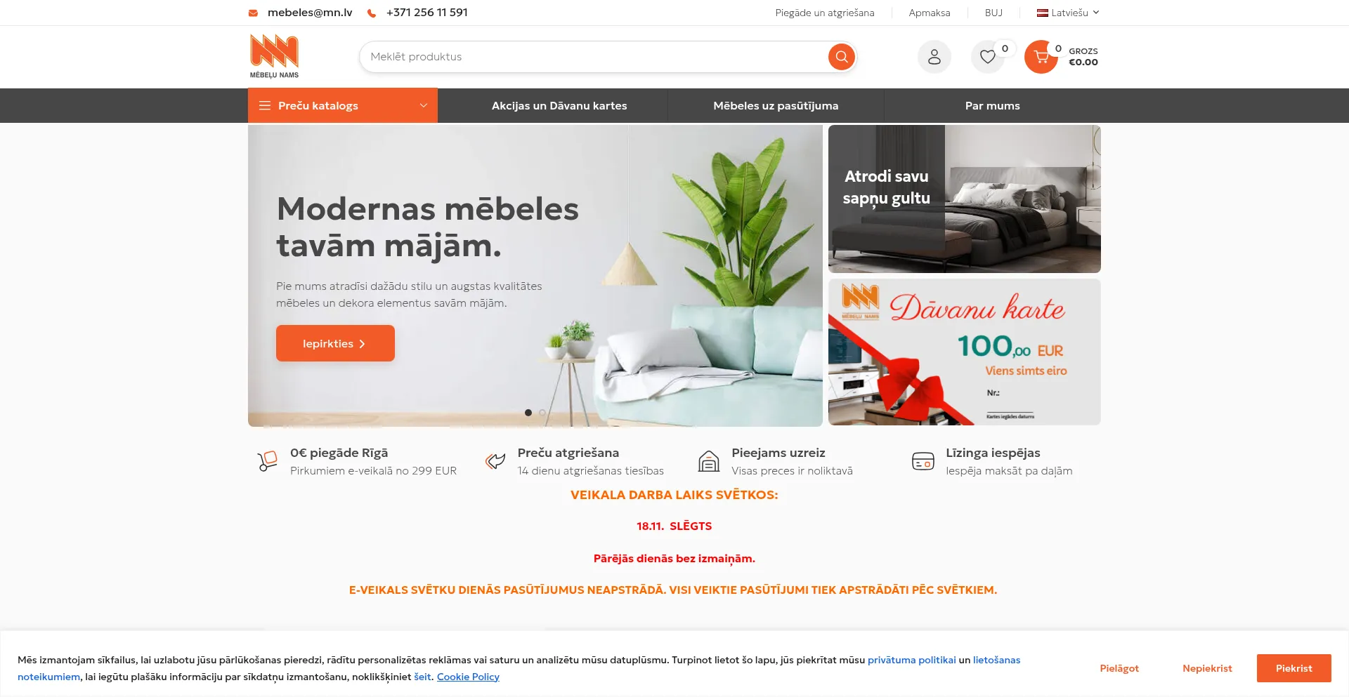 The website implements cookie consent mechanisms in compliance with privacy regulations such as GDPR or CCPA. This demonstrates that mnmebeles.lv adheres to data protection standards and provides users with control over personal data collection practices.