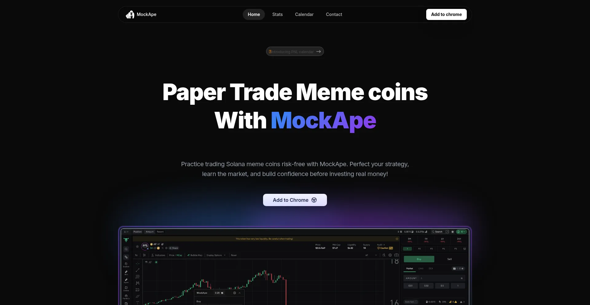 MockApe Chrome extension enables risk-free paper trading of Solana meme coins. Practice trading strategies with realistic market simulation and track your performance.