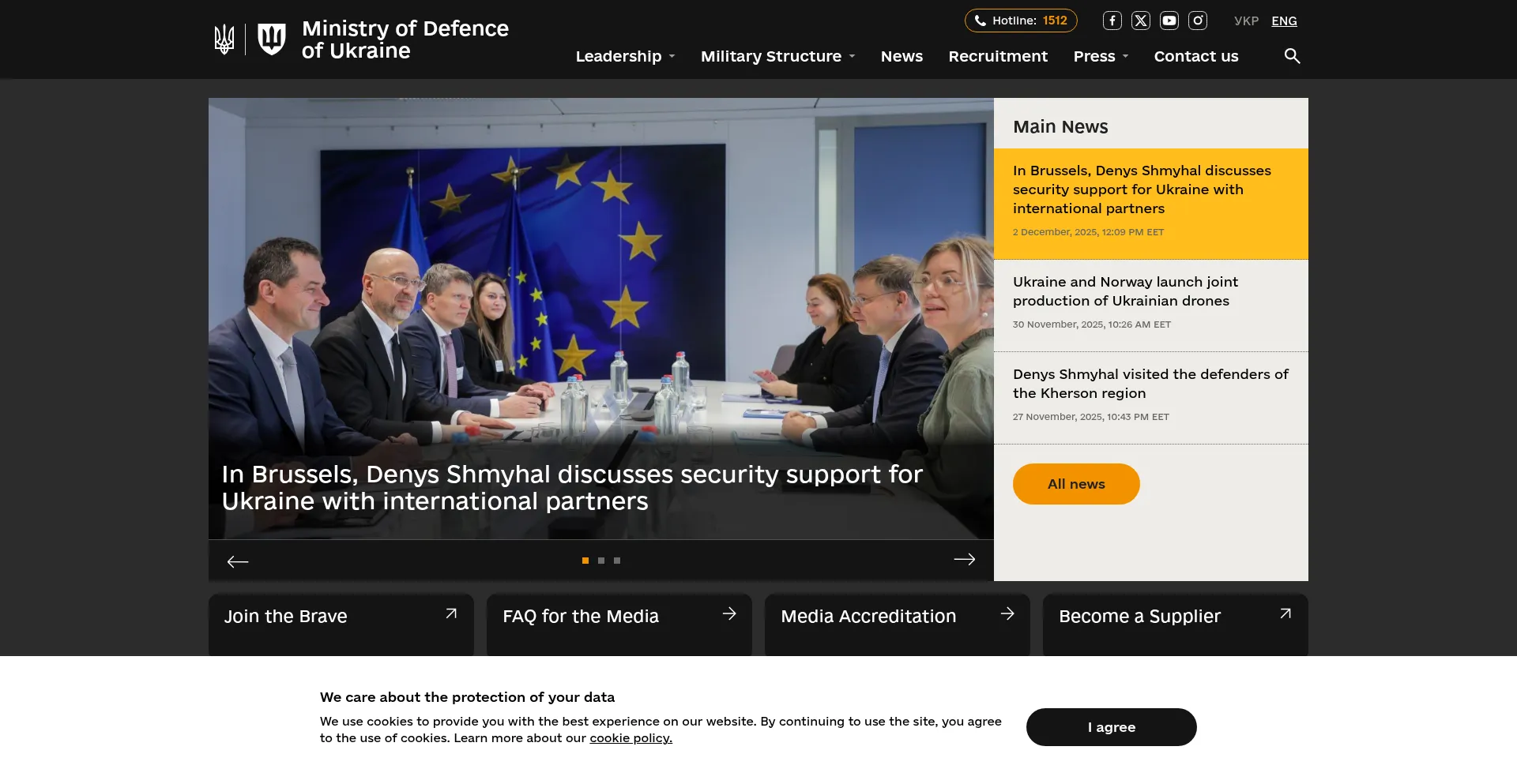 The website implements cookie consent mechanisms in compliance with privacy regulations such as GDPR or CCPA. This demonstrates that mod.gov.ua adheres to data protection standards and provides users with control over personal data collection practices.