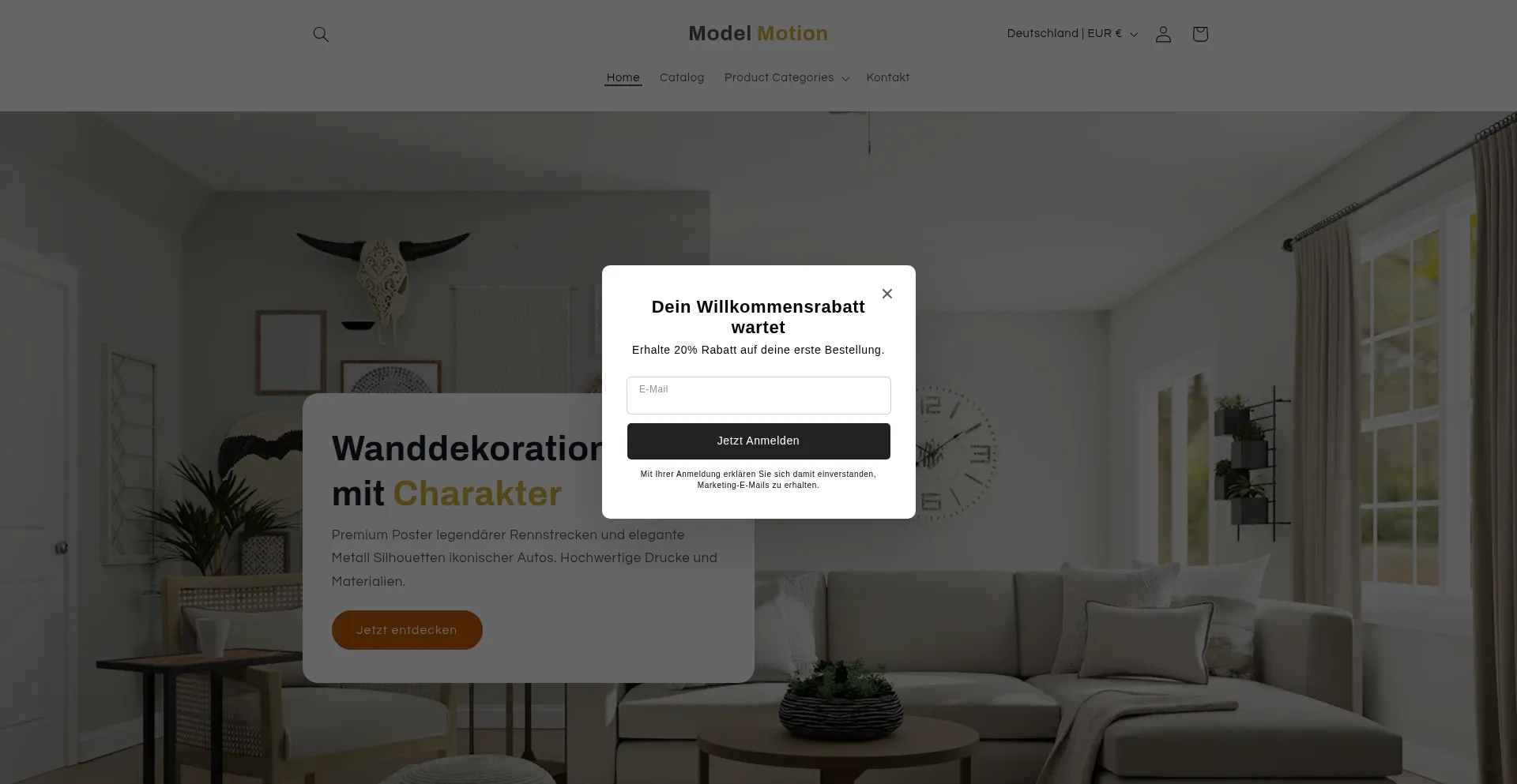 Analysis indicates that model-motion.de operates as an e-commerce platform facilitating online transactions for goods or services. The website implements shopping cart functionality, payment processing systems, and product catalog features typical of commercial retail operations.