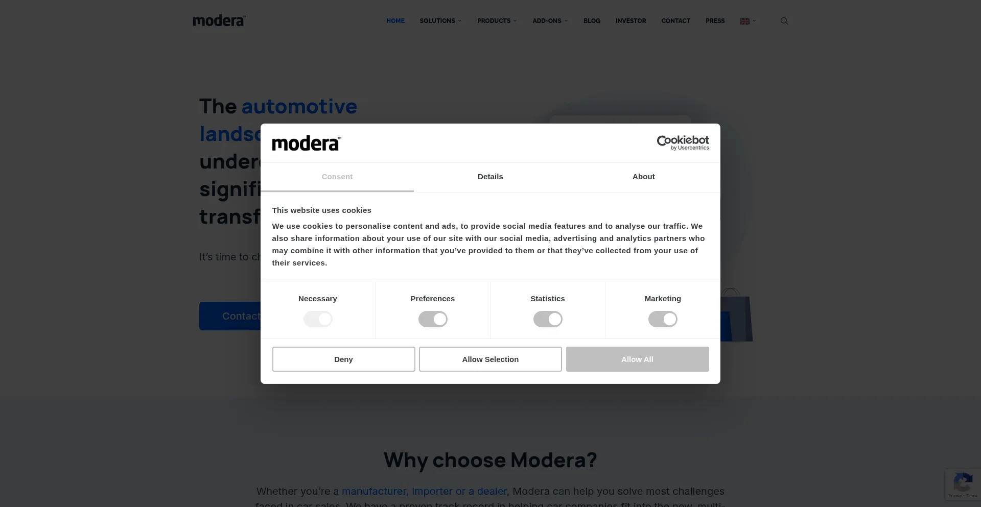 The website implements cookie consent mechanisms in compliance with privacy regulations such as GDPR or CCPA. This demonstrates that modera.com adheres to data protection standards and provides users with control over personal data collection practices.