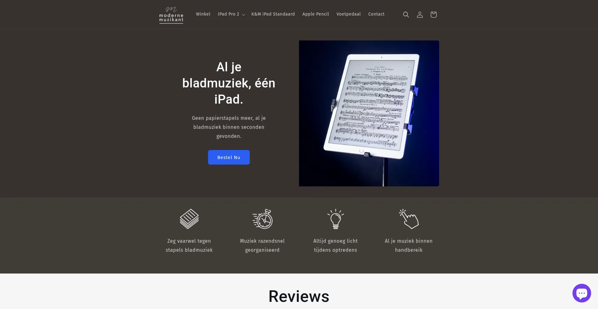 Analysis indicates that modernemuzikant.nl operates as an e-commerce platform facilitating online transactions for goods or services. The website implements shopping cart functionality, payment processing systems, and product catalog features typical of commercial retail operations.