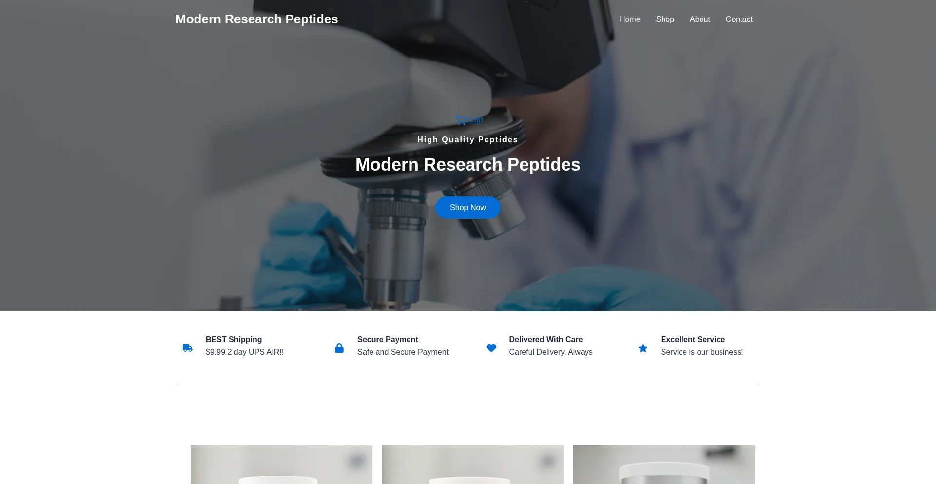 High Quality PeptidesModern Research Peptides Shop Now BEST Shipping $9.99 2 day UPS AIR!! Secure Payment Safe and Secure Payment Delivered With Care Careful