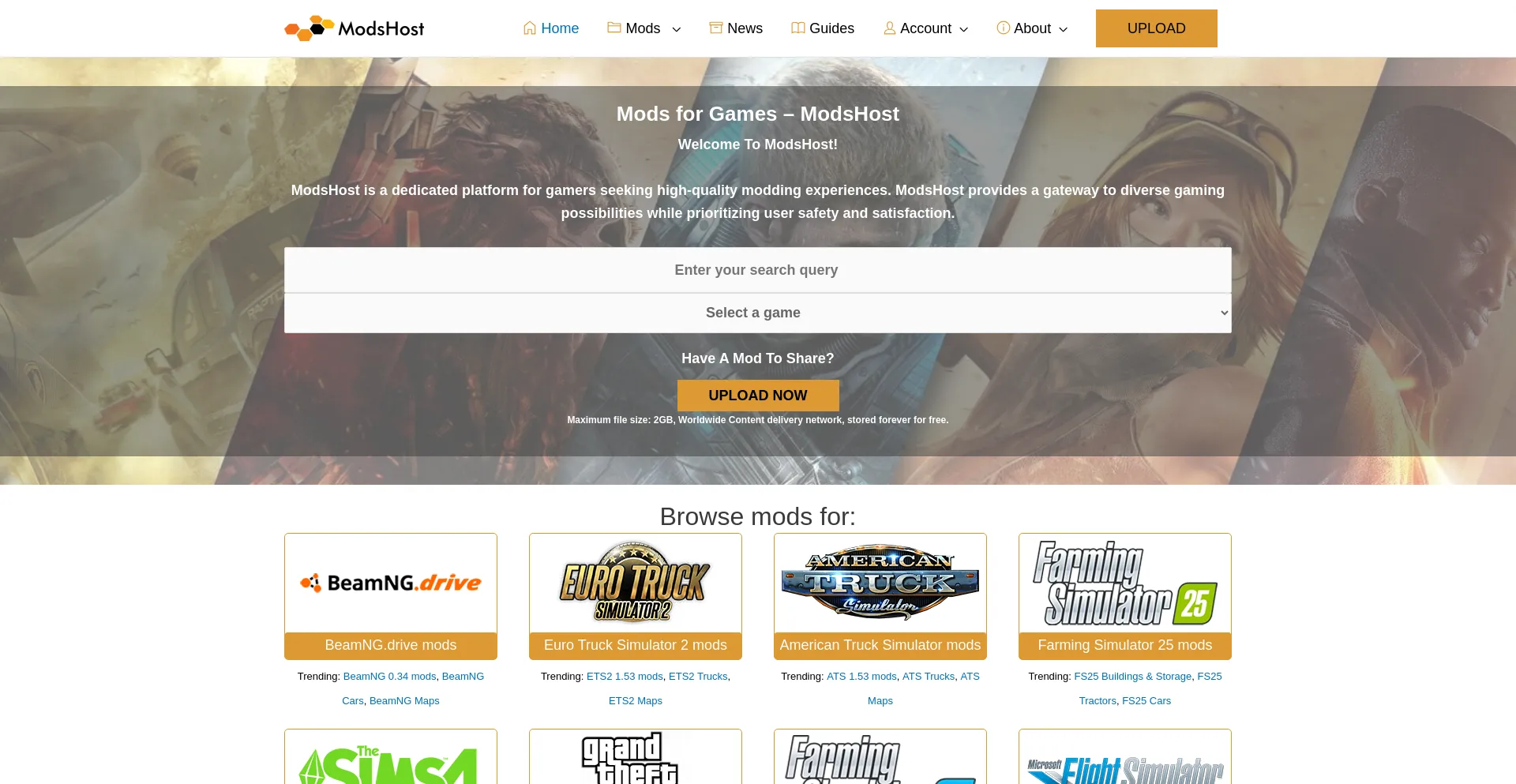 ModsHost is a dedicated game's mods hosting. We use a worldwide content delivery network to deliver the best download speeds for the latest mods! Upload now.