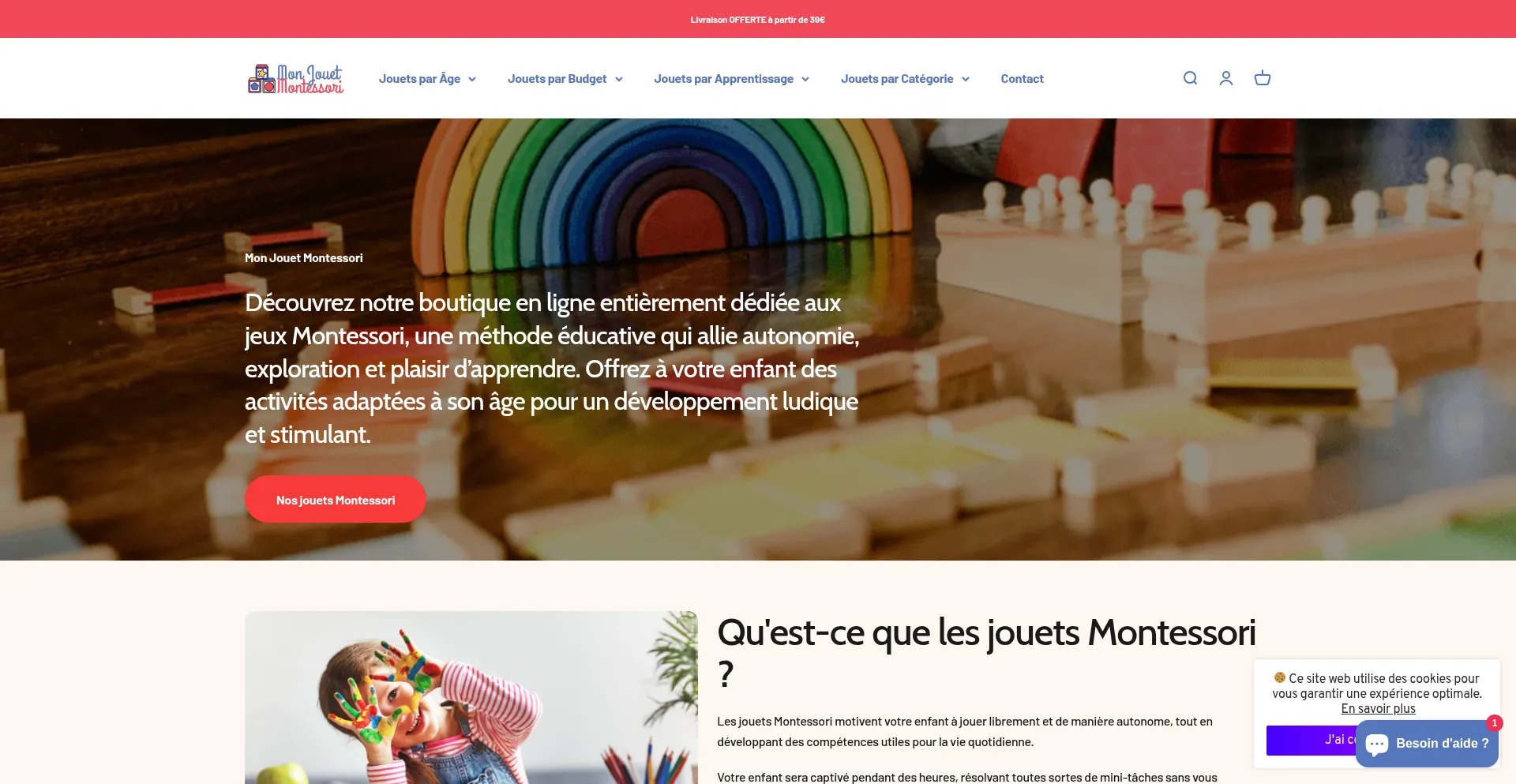Analysis indicates that mon-jouet-montessori.com operates as an e-commerce platform facilitating online transactions for goods or services. The website implements shopping cart functionality, payment processing systems, and product catalog features typical of commercial retail operations.
