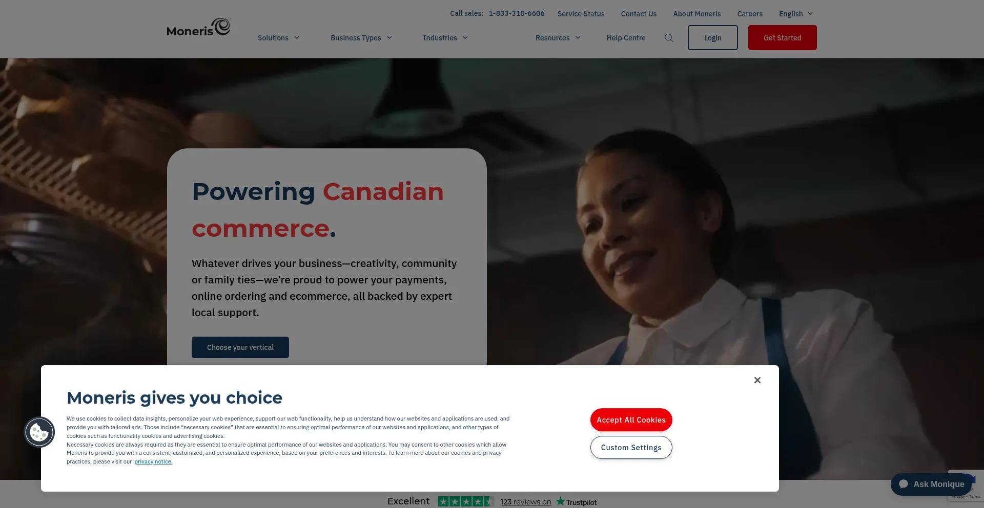 The website implements cookie consent mechanisms in compliance with privacy regulations such as GDPR or CCPA. This demonstrates that moneris.com adheres to data protection standards and provides users with control over personal data collection practices.