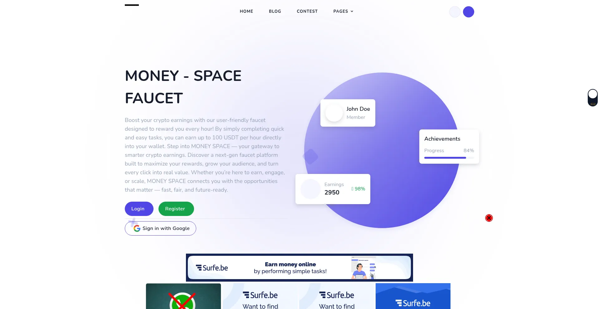 Money-space.online operates as a suspicious website with multiple red flags that compromise its trustworthiness and user safety. The platform exhibits concerning characteristics including misleading information, questionable operational practices, or potential malware distribution that poses significant risks to visitors.