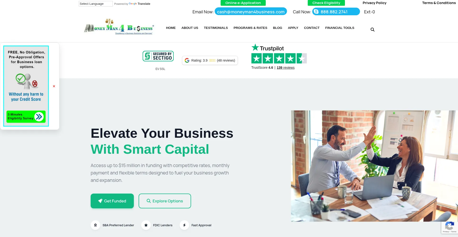 moneyman4business.com has a good Trustpilot score (4.6) based on 139 reviews, indicating a high level of trust from customers. It is a good sign of legitimacy!