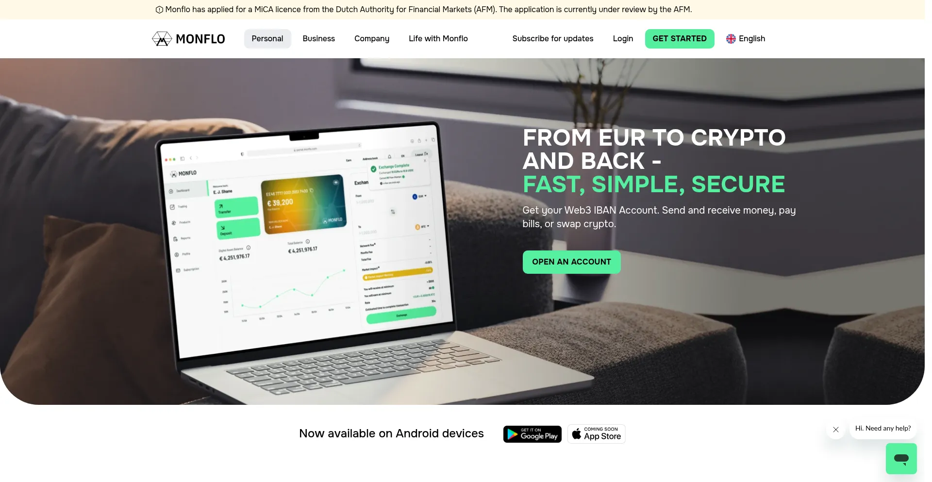 The monflo.com website offers a mobile application for Android devices, indicating expanded platform presence beyond web-based services.