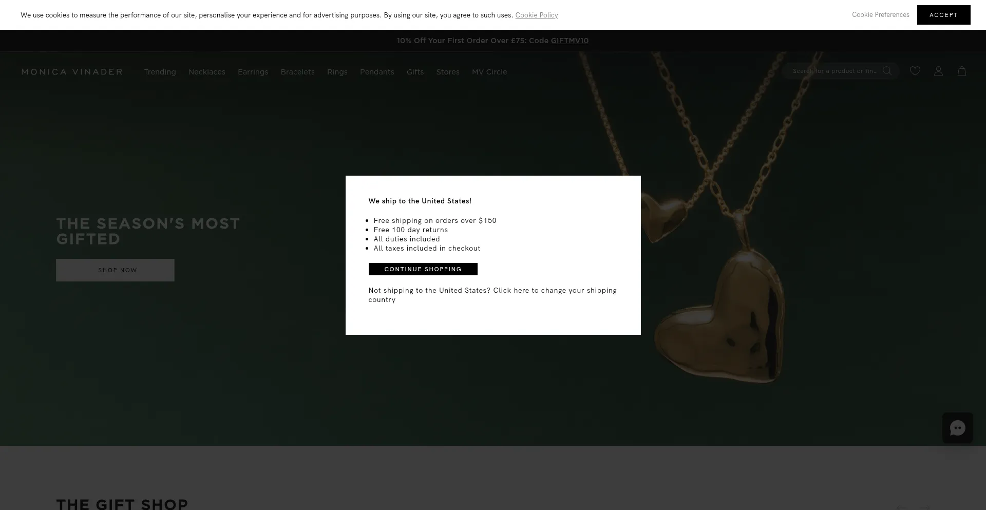 The website implements cookie consent mechanisms in compliance with privacy regulations such as GDPR or CCPA. This demonstrates that monicavinader.com adheres to data protection standards and provides users with control over personal data collection practices.