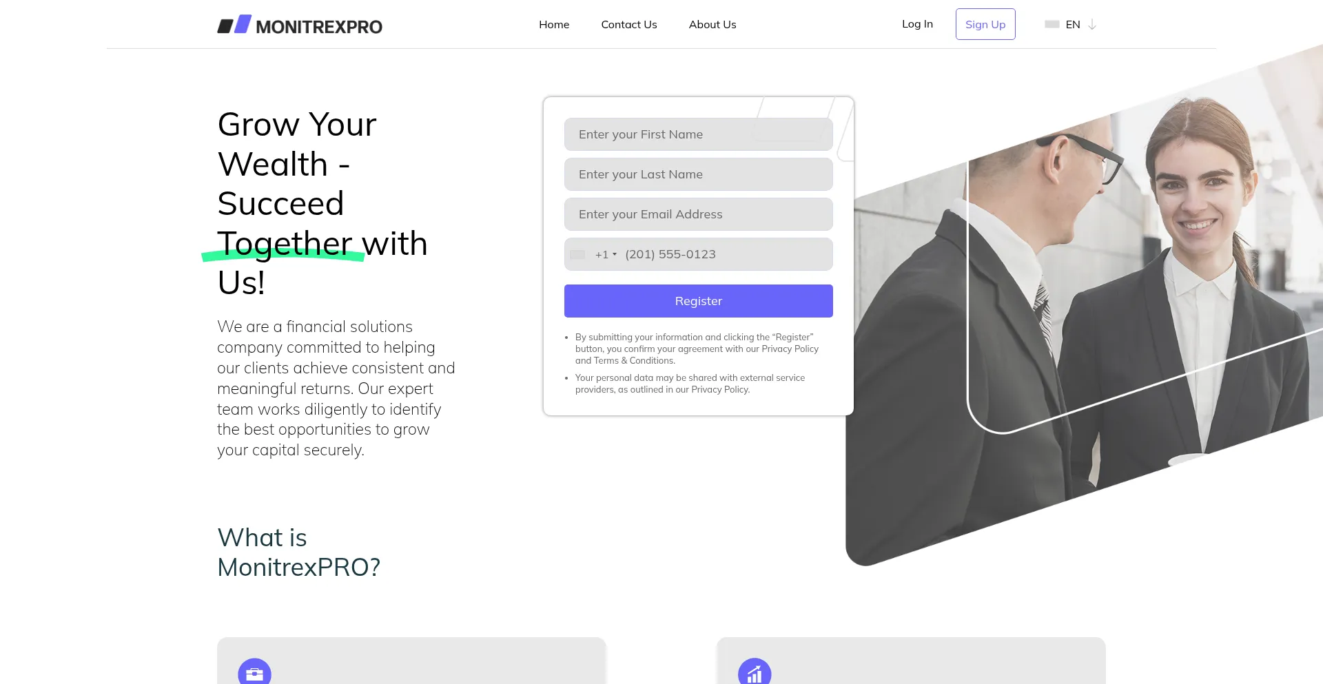 The monitrex-pro.com website provides financial services including investment management, wealth advisory, or financial planning solutions. Services may encompass portfolio management, investment opportunities, financial consulting, or asset growth strategies for individual and institutional clients.