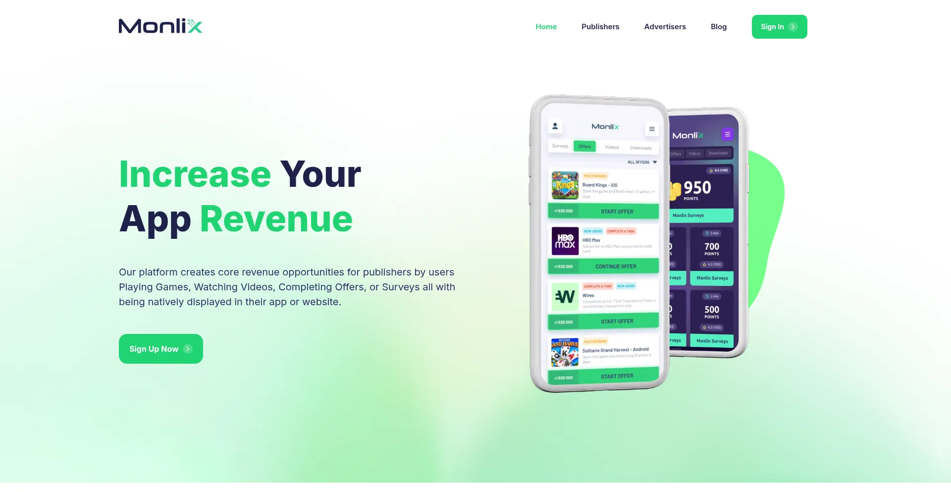 Our platform creates core revenue opportunities for publishers by users Playing Games, Watching Videos, Completing Offers, or Surveys all with being natively displayed in their ...