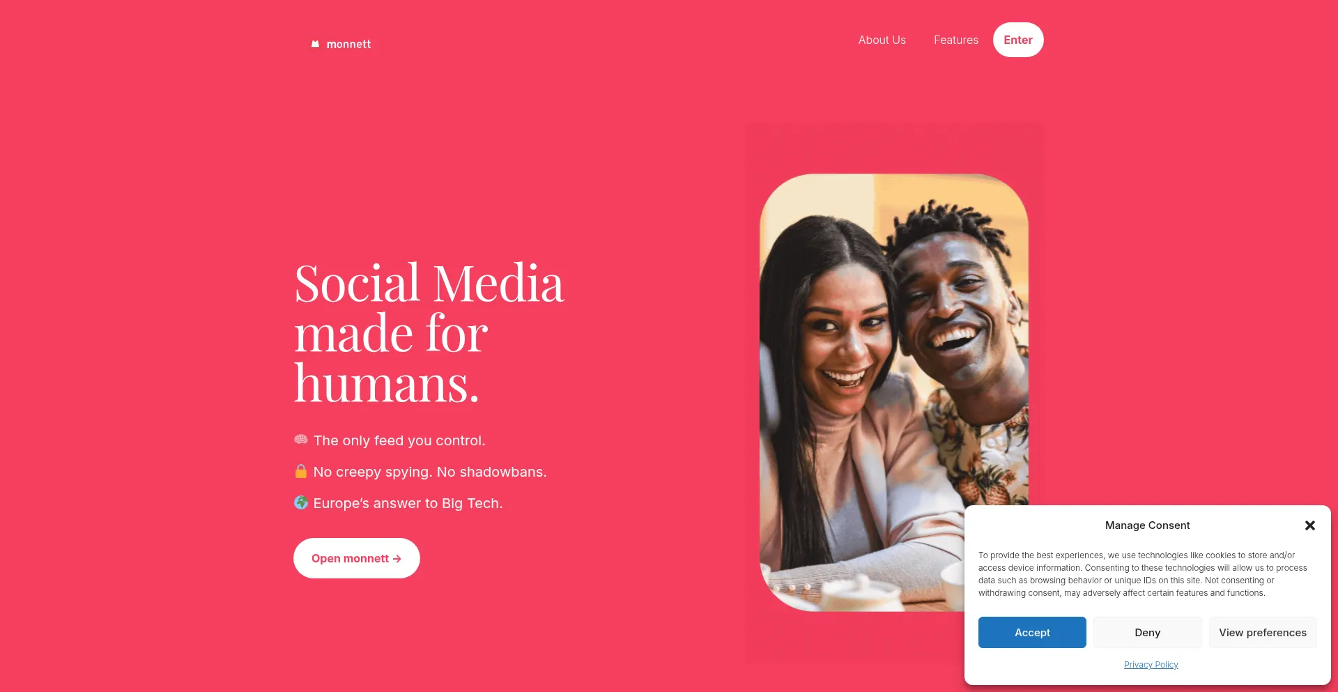 The monnett.social website uses Google Tag Manager to add and update tracking tags on its website.