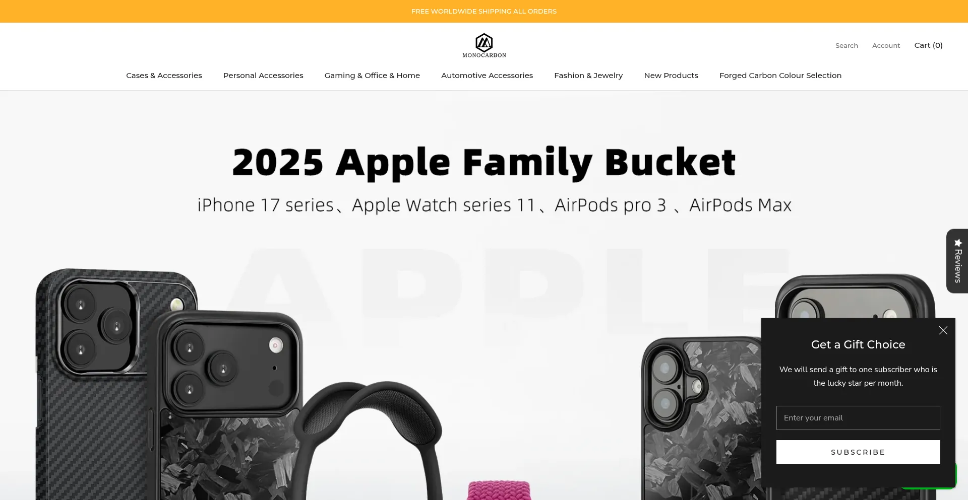 The website leverages popular product names and brands to attract traffic and generate user interest. These products may be offered through promotional campaigns or discount strategies designed to increase visitor engagement and conversion rates for monocarbontech.com.