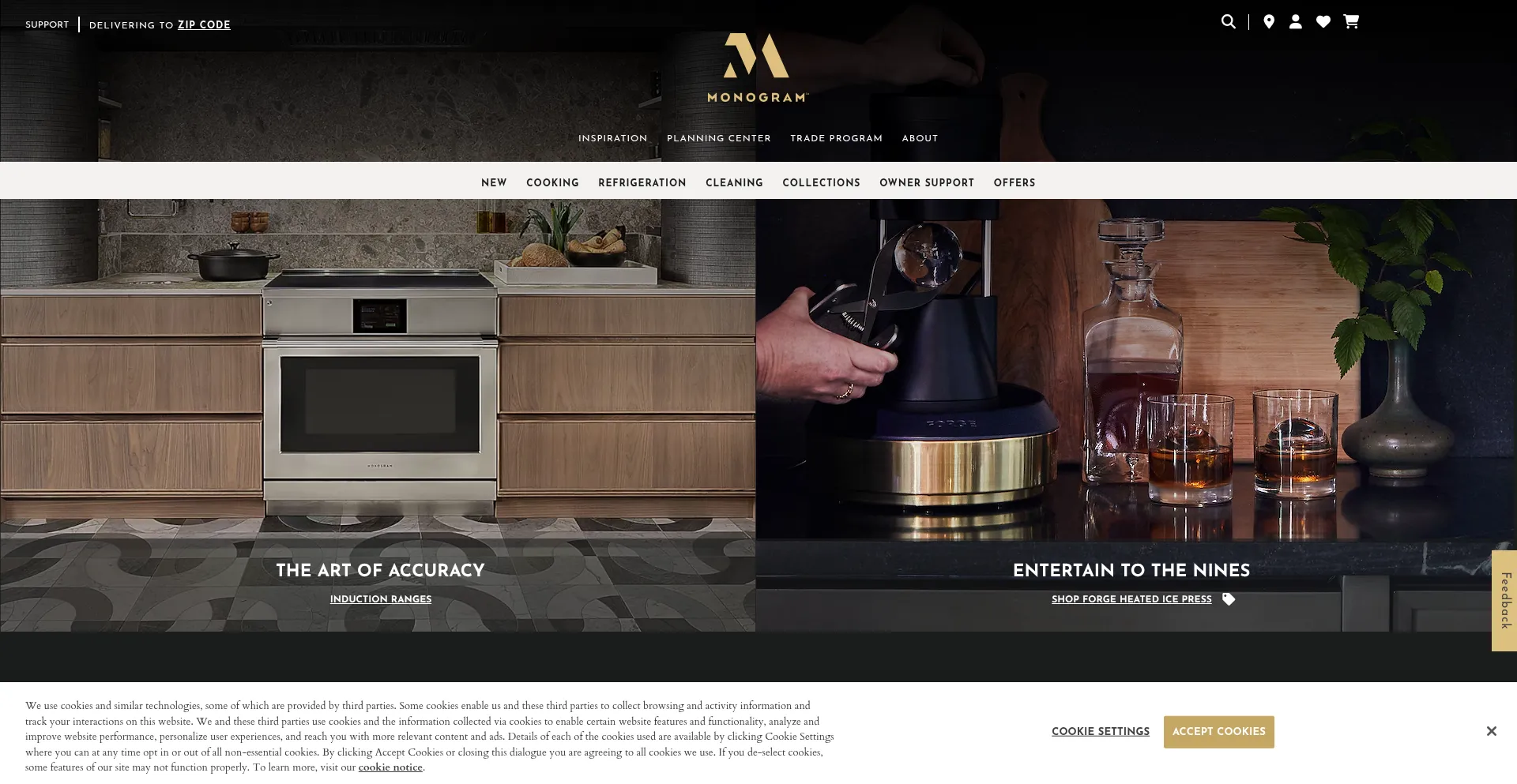 The website implements cookie consent mechanisms in compliance with privacy regulations such as GDPR or CCPA. This demonstrates that monogram.com adheres to data protection standards and provides users with control over personal data collection practices.
