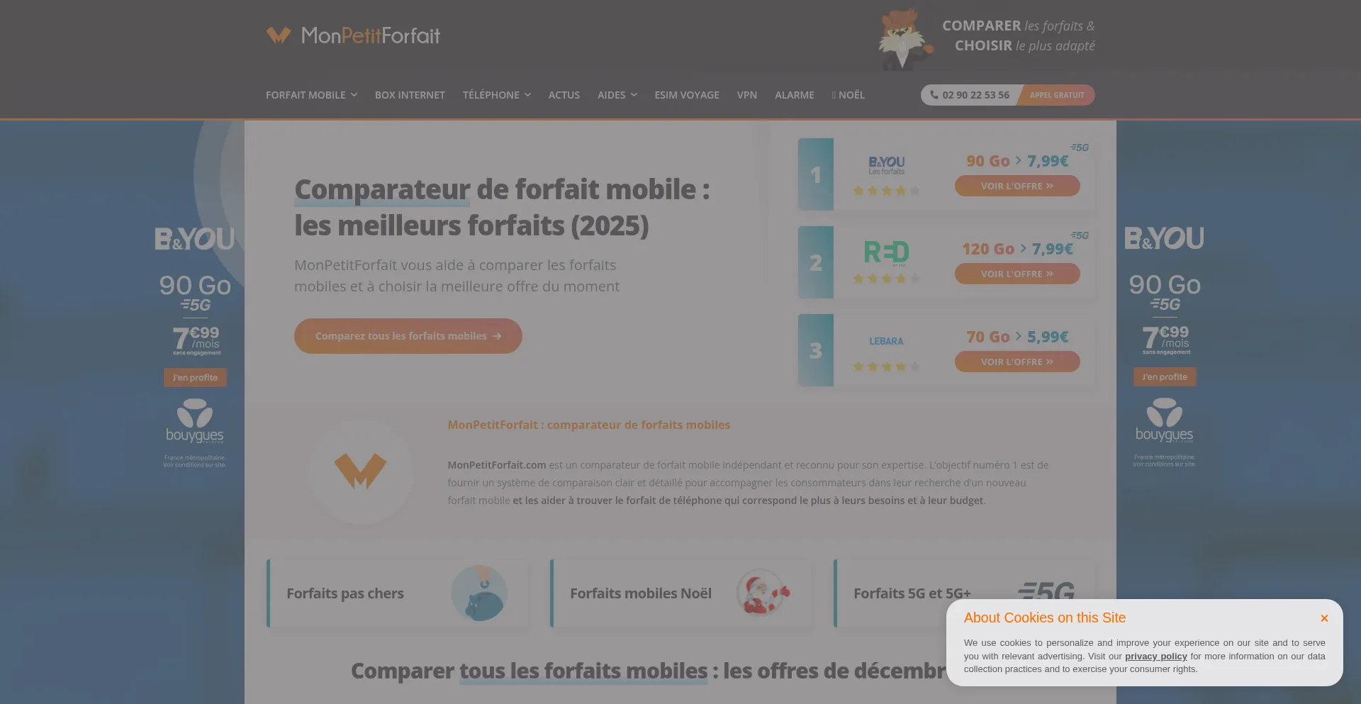 The website implements cookie consent mechanisms in compliance with privacy regulations such as GDPR or CCPA. This demonstrates that monpetitforfait.com adheres to data protection standards and provides users with control over personal data collection practices.