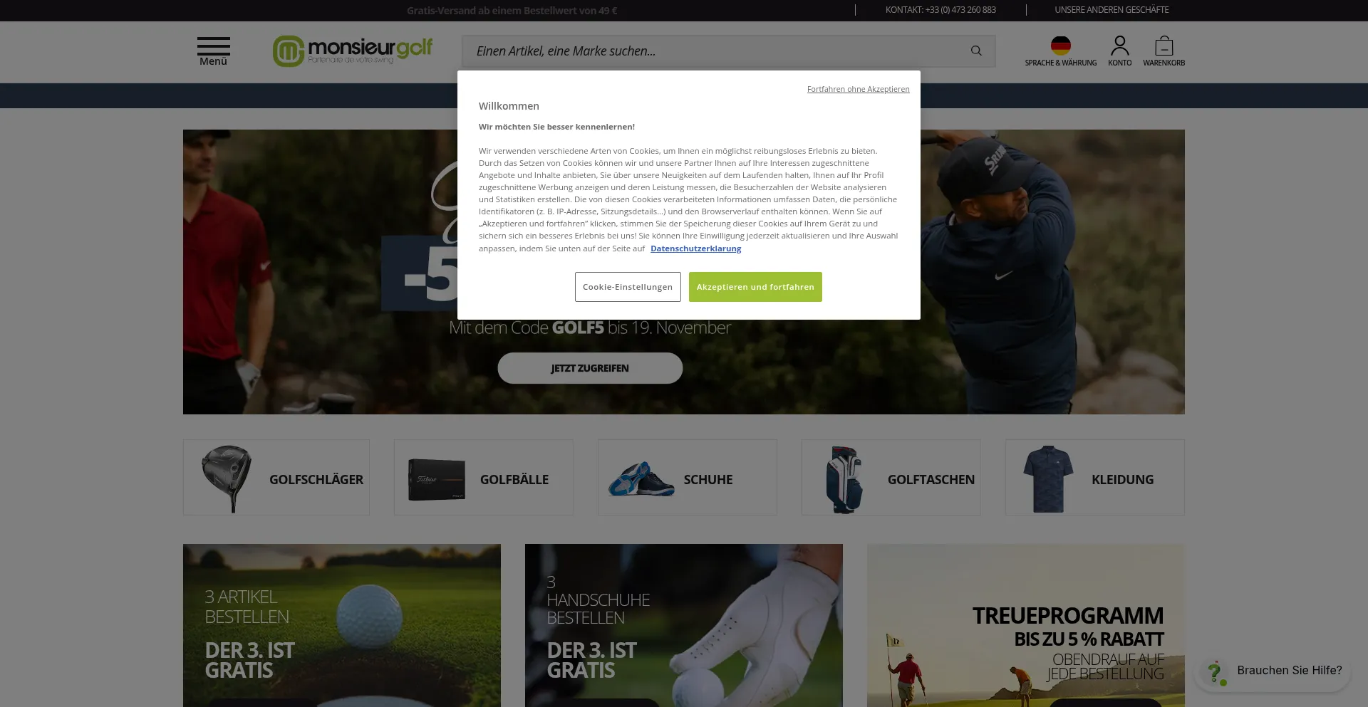 The website implements cookie consent mechanisms in compliance with privacy regulations such as GDPR or CCPA. This demonstrates that monsieurgolf.de adheres to data protection standards and provides users with control over personal data collection practices.