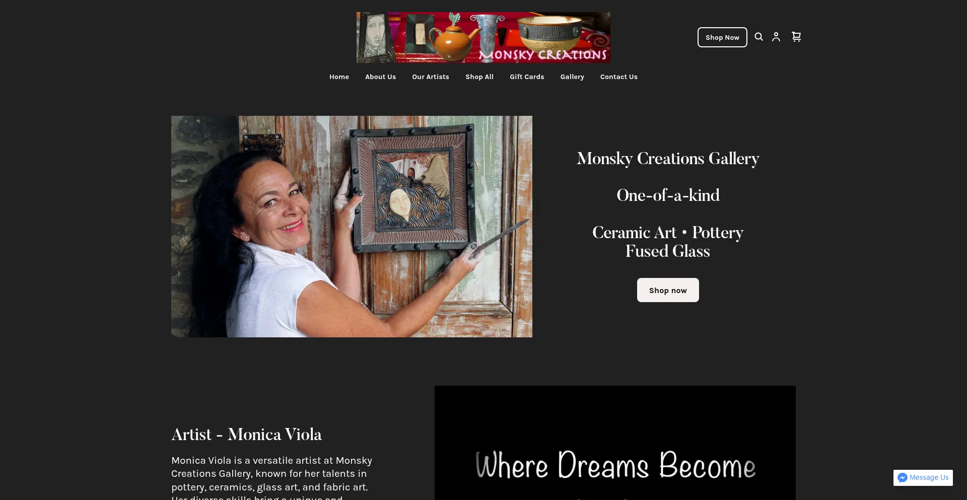 "MonSky Creations Gallery: Artistry in Merrickville, ON - Pottery, Ceramic, Fused Glass, Stained Glass, Painting, Fabric Art."