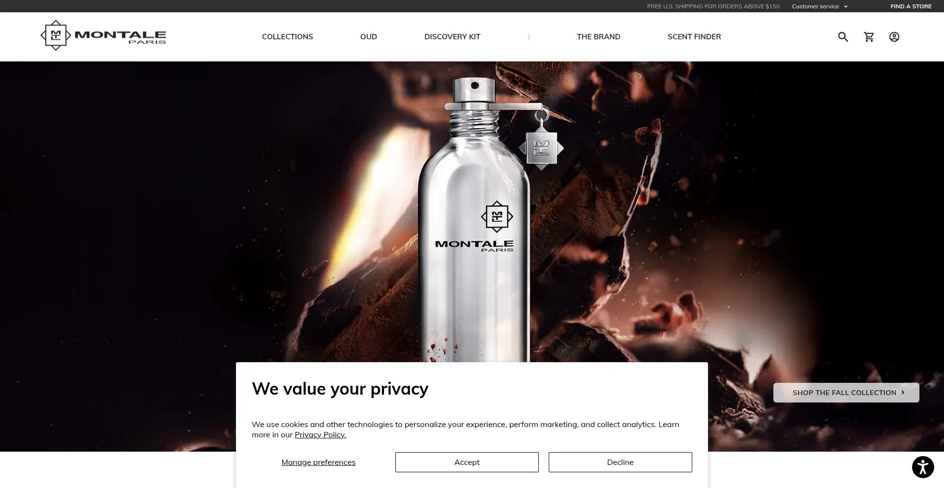 The website implements cookie consent mechanisms in compliance with privacy regulations such as GDPR or CCPA. This demonstrates that montaleparfums.us adheres to data protection standards and provides users with control over personal data collection practices.
