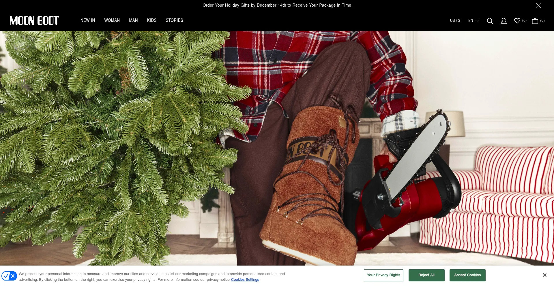 The moonboot.com website uses Google Tag Manager to add and update tracking tags on its website.
