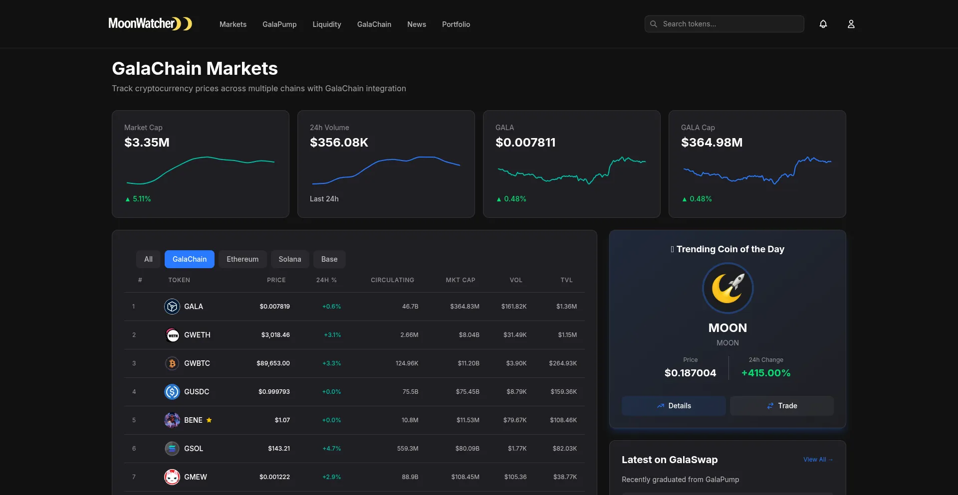 MoonWatcher | GalaChain Market Tracker