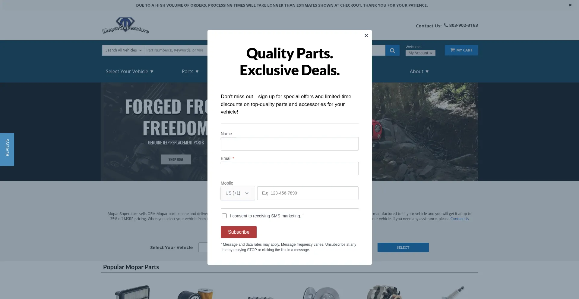The moparsuperstore.com website implements data collection forms requesting personal information including names, email addresses, phone numbers, or other sensitive details. Users should verify the legitimacy of it and review privacy policies before submitting personal data.