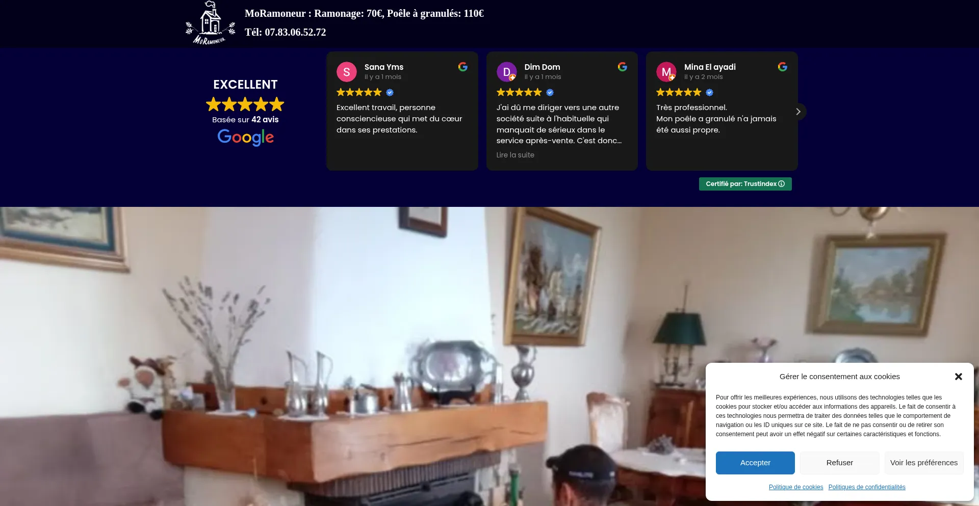 MoRamoneur : Ramonage: 70€, Poêle à granulés: 110€ – Tél: 07.83.06.52.72