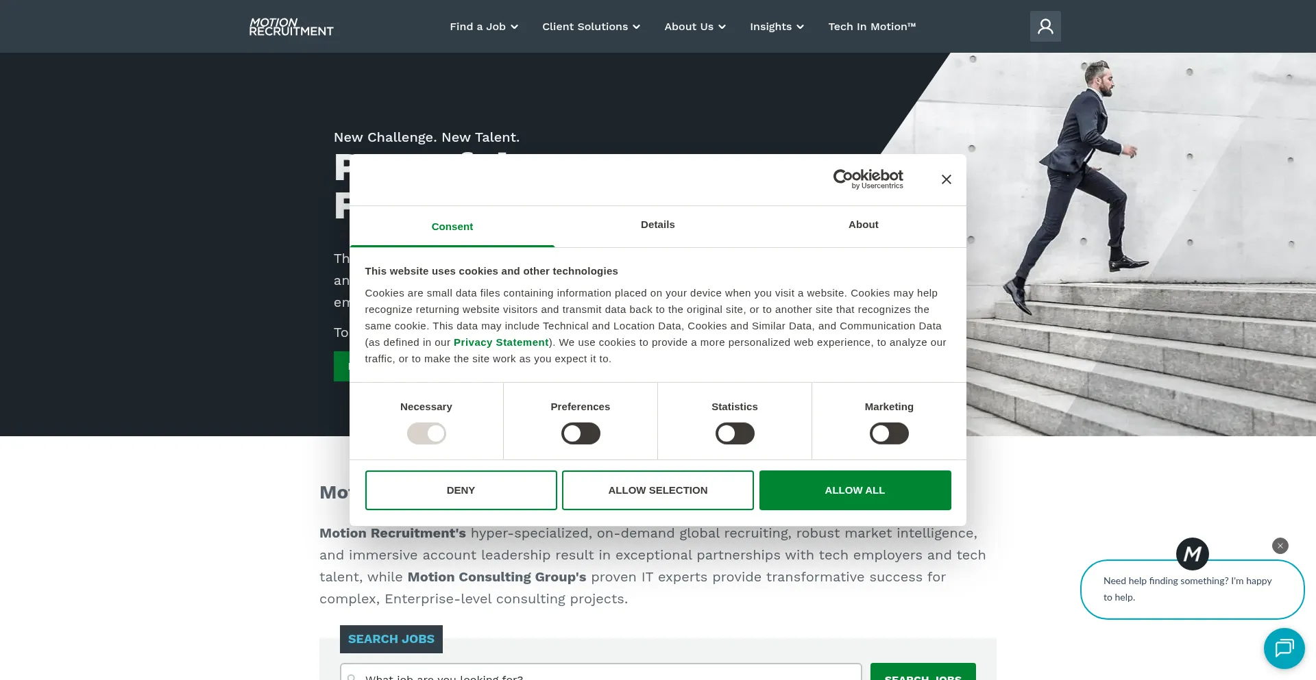 The website implements cookie consent mechanisms in compliance with privacy regulations such as GDPR or CCPA. This demonstrates that motionrecruitment.com adheres to data protection standards and provides users with control over personal data collection practices.