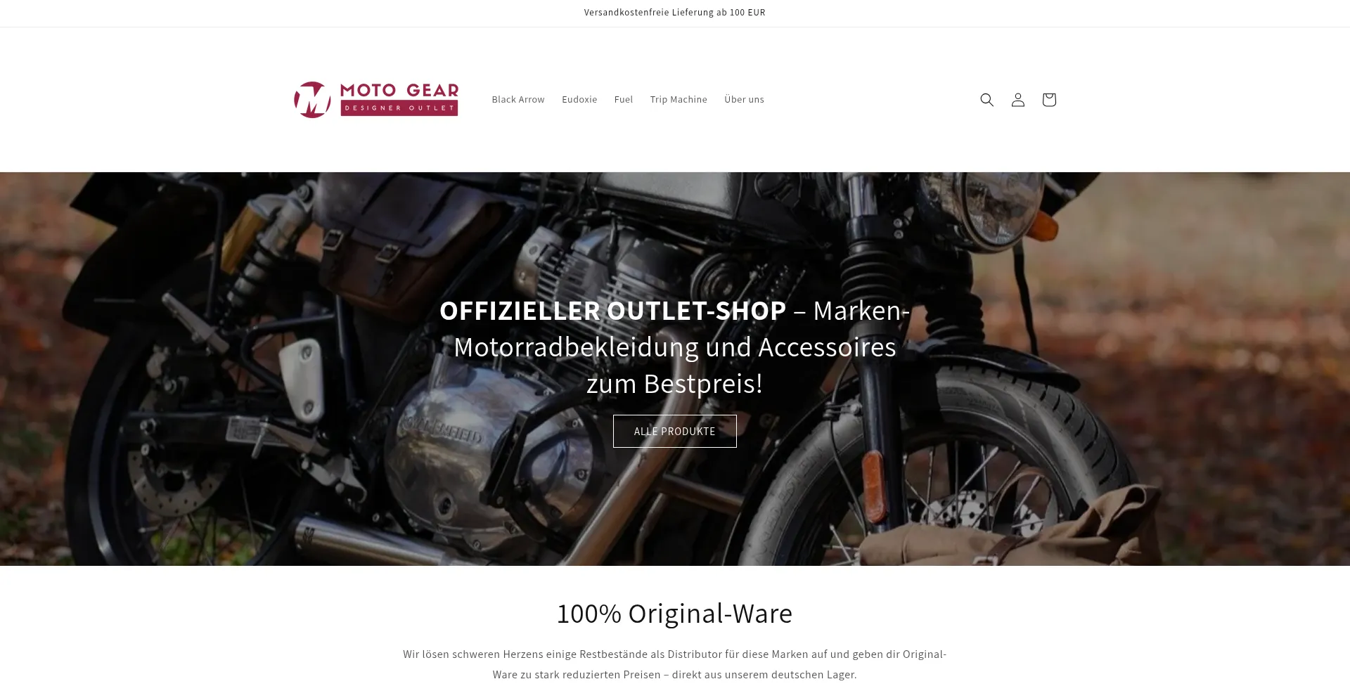 Outlet-Shop für Marken-Motorradbekleidung und Accessoires – Hier findest du Restbestände von Black Arrow, Eudoxie, Fuel Motorcycle und Trip Machine Company zu absoluten Best...