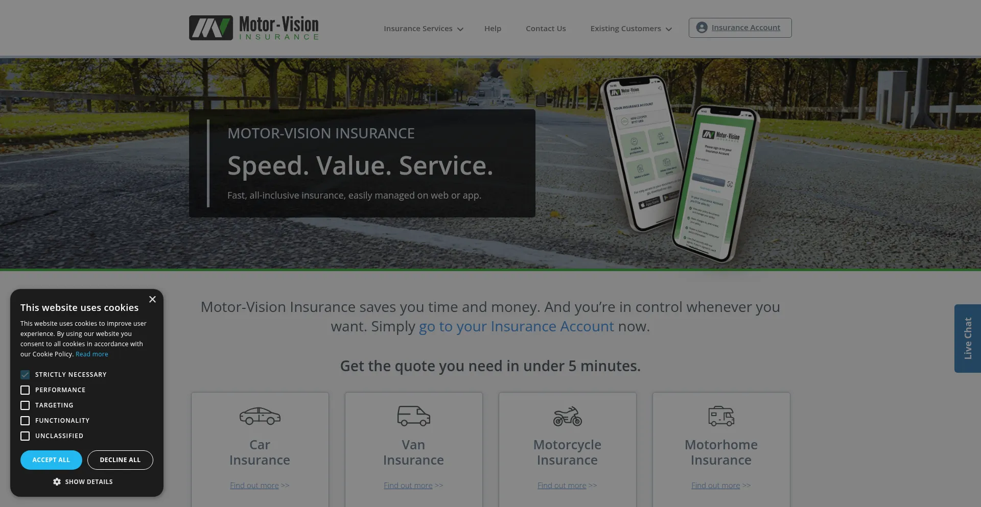 Get a fast online quote from Motor Vision Insurance and Save on car, van, motorcycle or motorhome insurance.