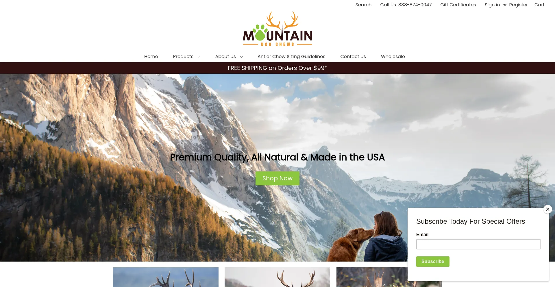 Experience Mountain Dog Chews, a premium brand of antlers for dogs, dog treats and outdoor gear for the sporting dog or posh pup. When only the best natural dog treats or antler...
