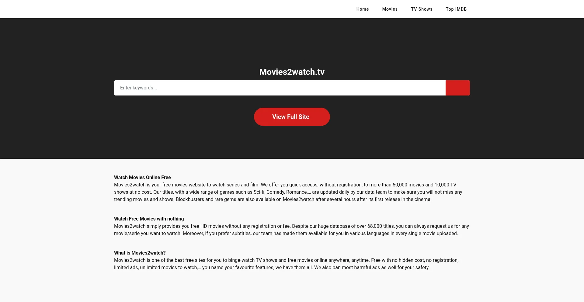 Movies2watch.tv operates as a suspicious website with multiple red flags that compromise its trustworthiness and user safety. The platform exhibits concerning characteristics including misleading information, questionable operational practices, or potential malware distribution that poses significant risks to visitors.