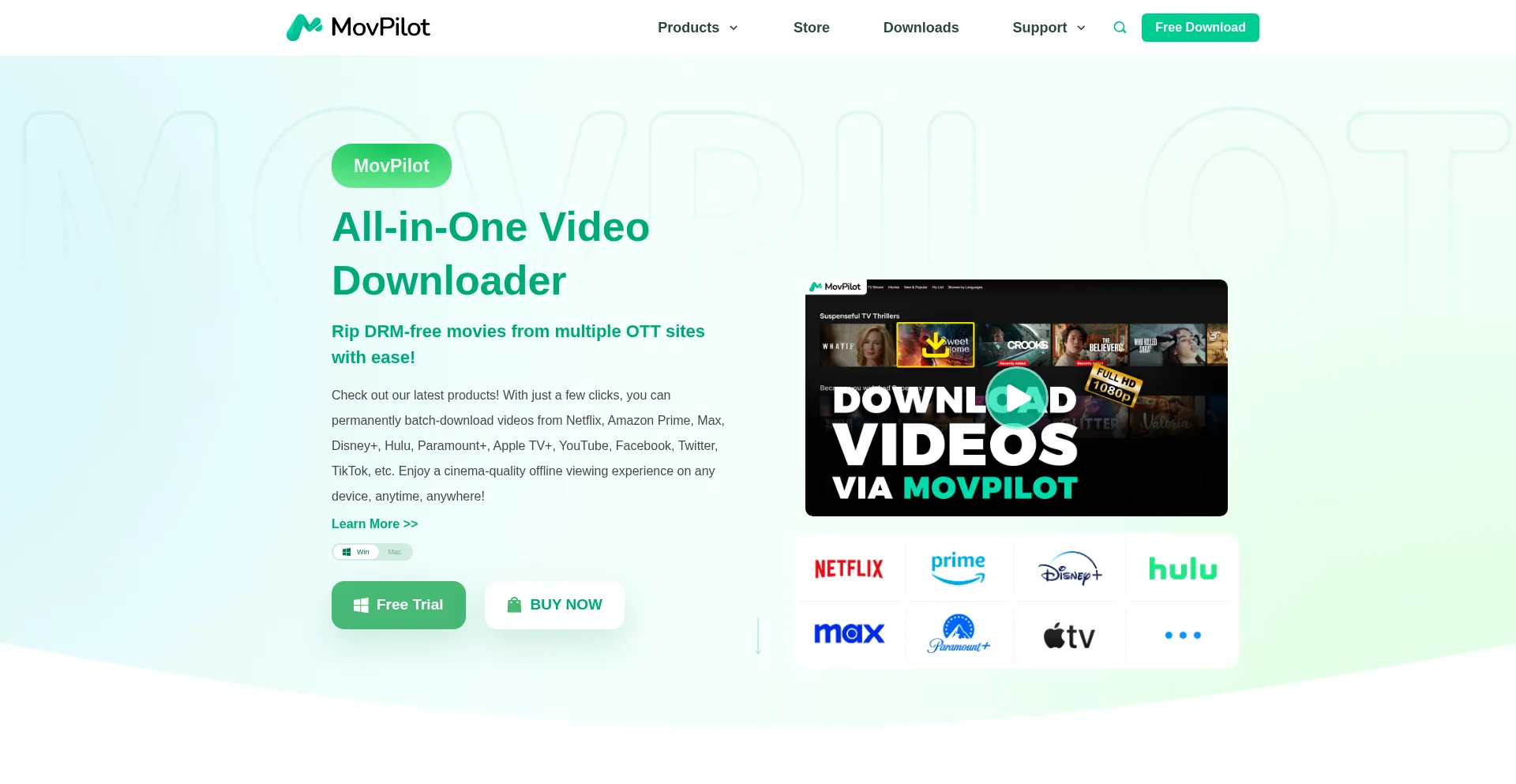 MovPilot provides the best streaming video downloader, helping you flexibly download movies from Netflix, Amazon, Disney+, Hulu, Paramount+, Max, etc for offline viewing.