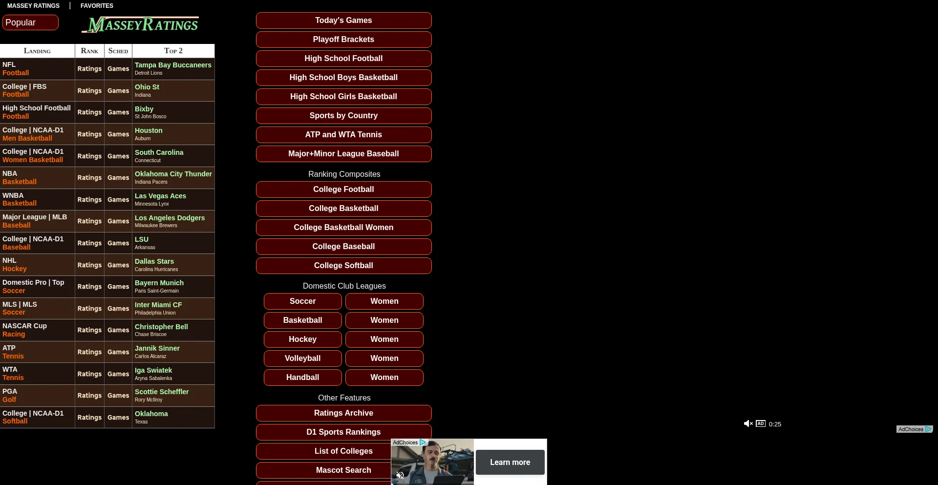 Massey Ratings - Sports Computer Ratings, Scores, and Analysis