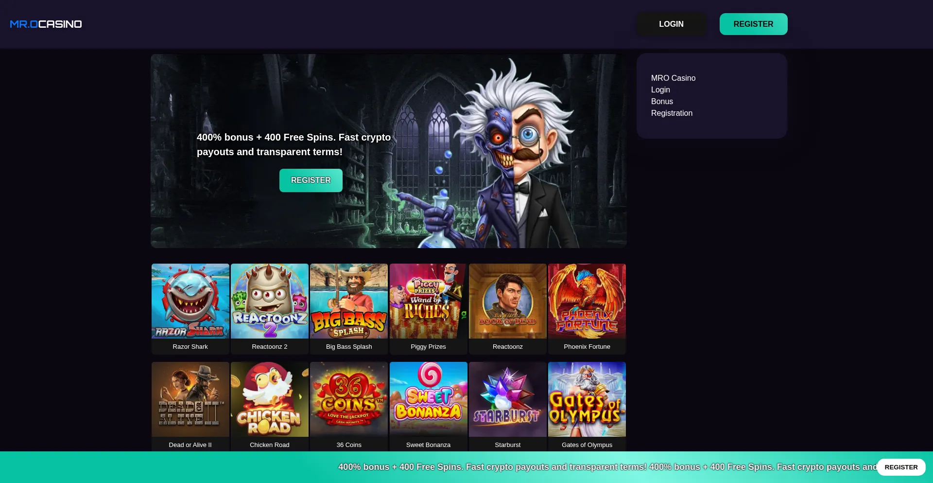 Play at MRO Casino with instant crypto payouts, transparent bonuses, and 24/7 support. Claim your 400% welcome package and enjoy fair, secure gaming.