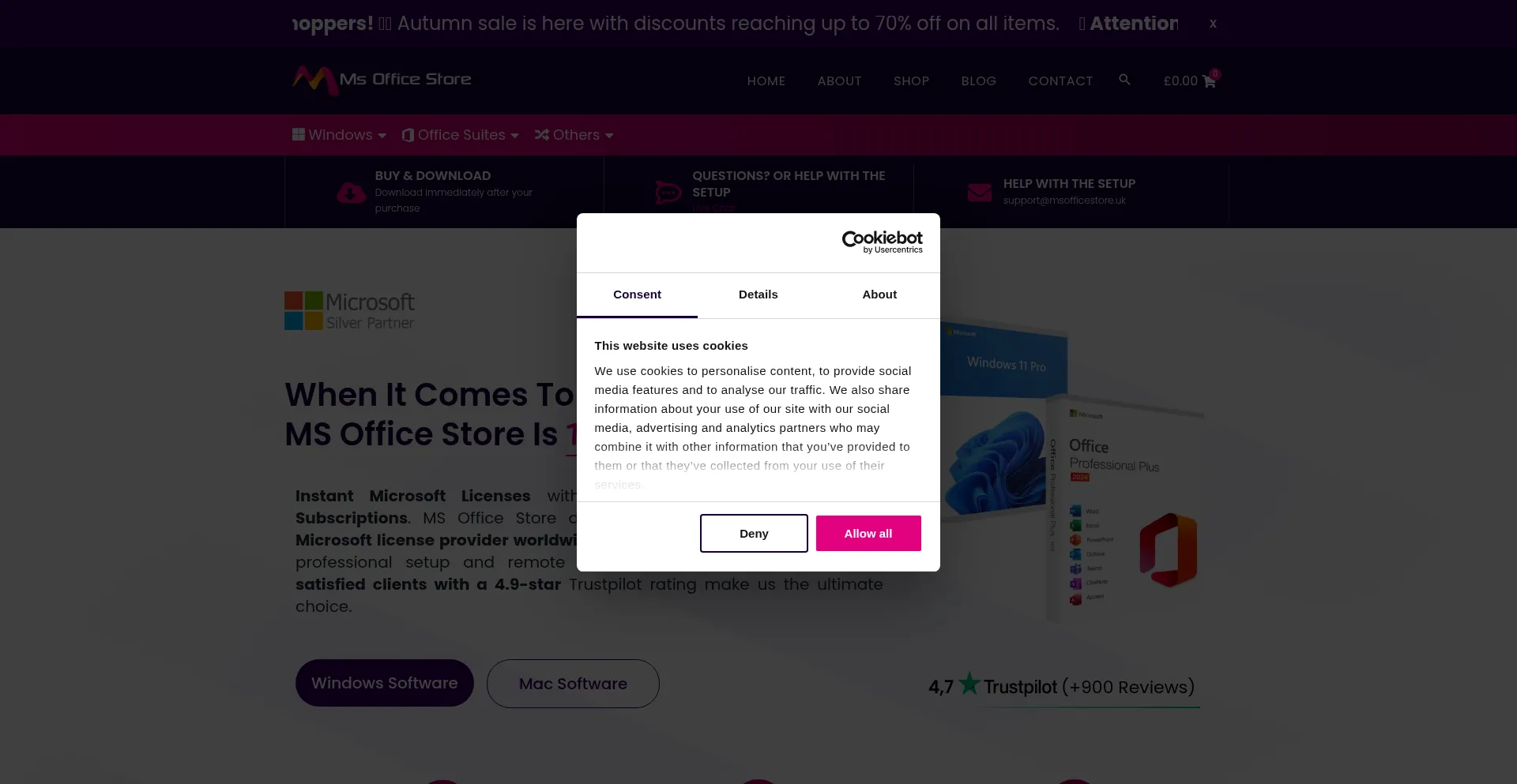 The website implements cookie consent mechanisms in compliance with privacy regulations such as GDPR or CCPA. This demonstrates that msofficestore.uk adheres to data protection standards and provides users with control over personal data collection practices.