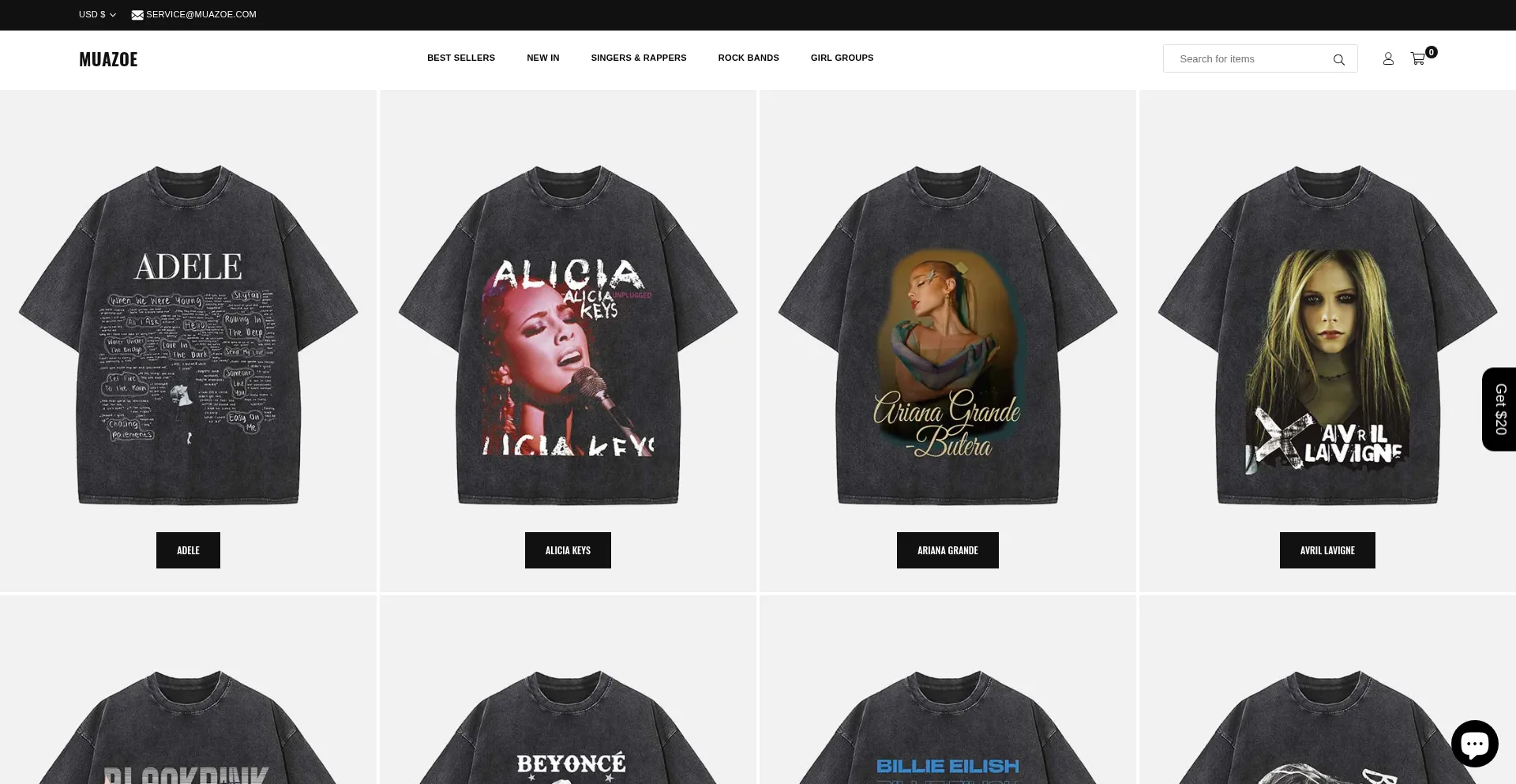 Muazoe: Nice print t-shirts for fans of musical artists.