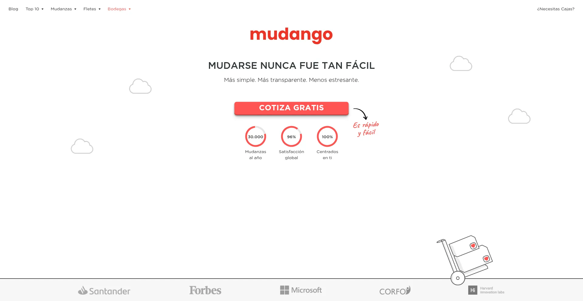 ¿Necesitas una mudanza o arriendo de bodega? ¡Estás en el lugar correcto! En Mudango, encuentras el servicio que necesitas, rápido, fácil y sin pagar de más.